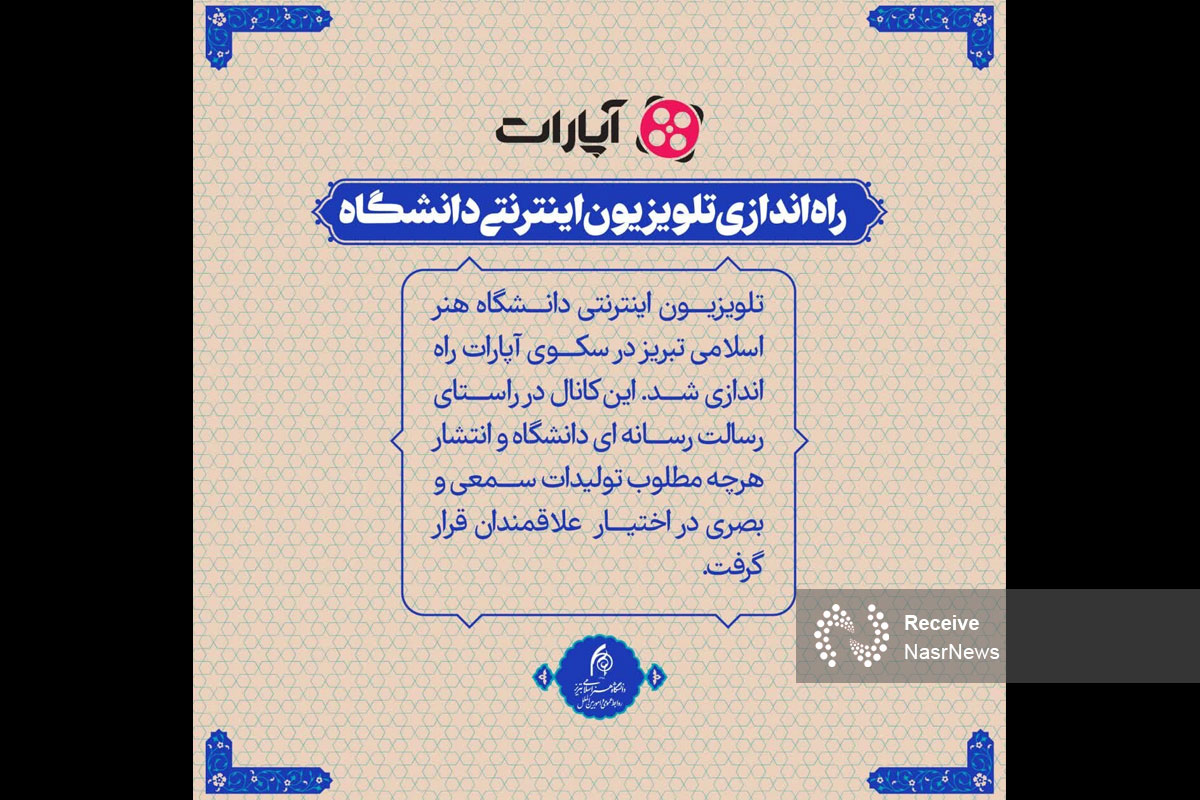 دانشگاه هنر اسلامی تبریز؛ در راستای تحقق رسالت رسانهای و اطلاعرسانی دانشگاه، اقدام به راهاندازی تلویزیون اینترنتی خود در سکوی آپارات کرده است.