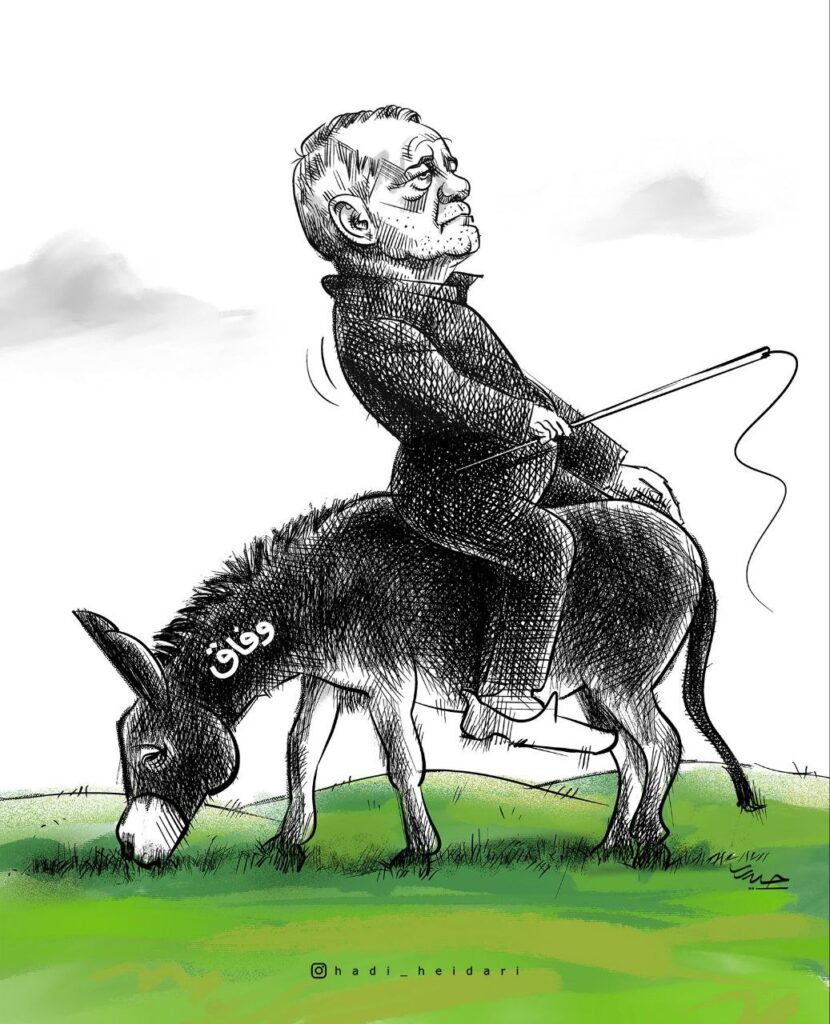 به گزارش تریبون تبریز، در این کاریکاتور، رئیسجمهور مسعود پزشکیان در حالی به تصویر کشیده شده که سوار بر الاغی با نام «وفاق» است؛ اما جهت نشستن او خلاف مسیر حرکت حیوان طراحی شده است. این تصویر، بهگفته برخی کاربران، کنایهای است به اینکه مسیر «وفاق ملی» از کنترل رئیسجمهور خارج شده و بیجهت و بیهدف حرکت میکند.